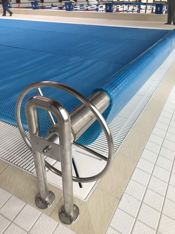 Medencetakaró fólia feltekerésére és tárolására alkalmas csévéző. A medence méretéhez igazítva gyártjuk elektropolírozott saválló anyagból.