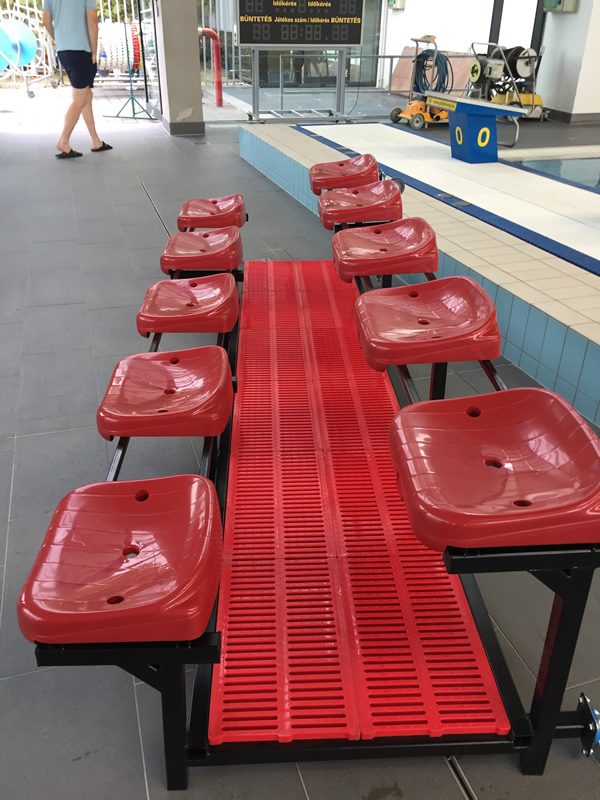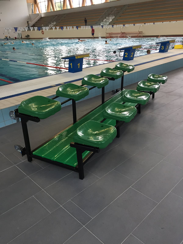 Tüzihorganyzott vázzal, FINA színeknek megfelelő, választható színösszeállításban kérhető, kerekeken gurítható cserepad.